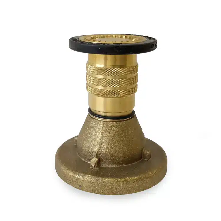 Assim, a boca regulável deste esguicho com engate rápido permite adaptabilidade durante o combate a incêndio. Fabricada em latão fundido e acabamento usinado, esta peça possui alta confiabilidade e durabilidade. Assim, o anel de borracha para proteção do orifício de saída proporciona segurança ao agente de combate.