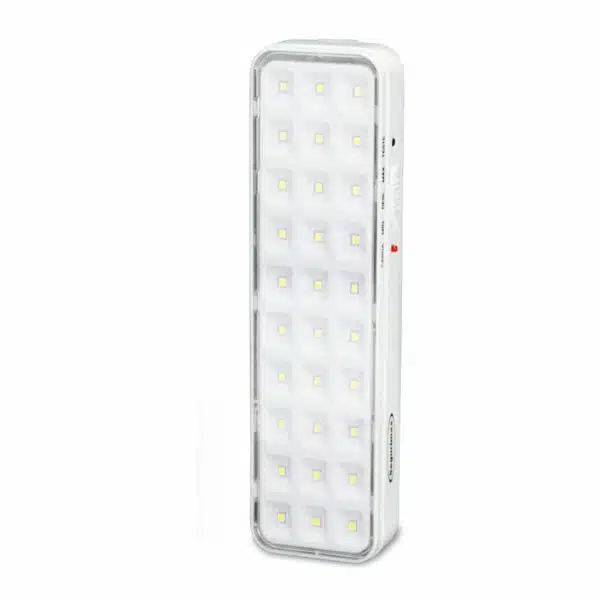 Esta luminária de emergência autônoma de 30 leds com bateria de Lítio é uma solução eficaz e segura em situações de falta de energia elétrica. A bateria de lítio que tem como principal característica a baixa manutenção e além disso, não existe memória, ou seja, não vicia.