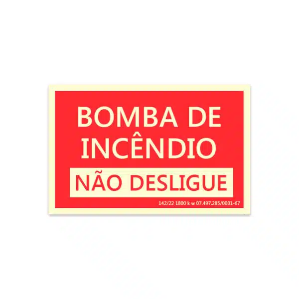 • Produto: Placa de sinalização bomba de incêndio não desligue
